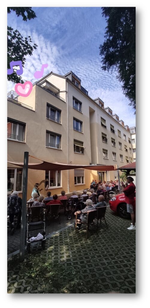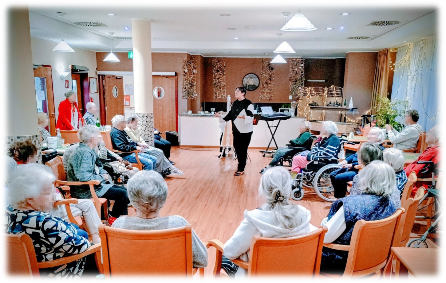 Auch bettlägigere Menschen haben ein Recht auf soziale Teilhabe, auf unterschiedliche Live-Musiken und darauf selbst zu musizieren, denn vom Radio oder TV werden sie oft genug im Alltag „voll gedudelt“.